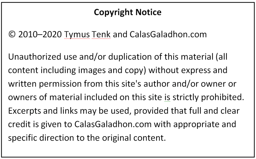 2010-2020 Calas Galadhon Copyright Notice Published February 6, 2020 2:31 pm at 1377 × 853 in 2010-2020 Calas Galadhon Copyright Notice Share this: Share on Facebook (Opens in new window) Facebook Share on X (Opens in new window) X Email a link to a friend (Opens in new window) Email Print (Opens in new window) Print Like Loading...