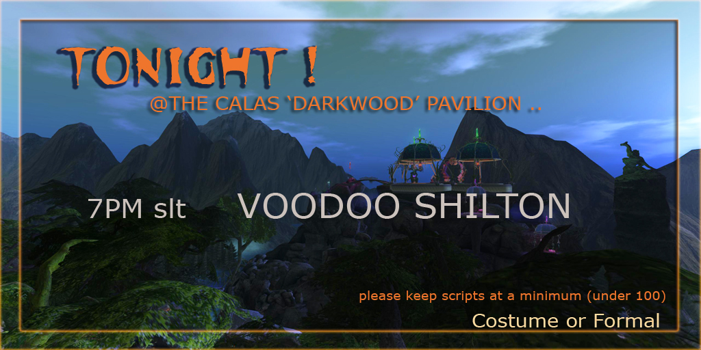 What is the Halloween season (yes, Halloween is a season at Calas 🙂 without a little Voodoo ! 7pm Tonight …. VOODOO SHILTON @ the Darkwood Pavilion tonight ! Join us for an our of fun and some of the best in live music from one of the best!!
