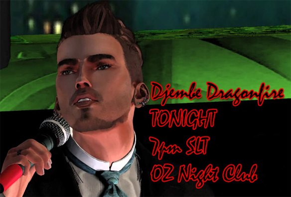 Calas Galadhon Park proudly presents DJEMBE DRAGONFIRE TONIGHT! Djembe performs a variety of musical genres with a smooth yet powerful voice. Whether you enjoy opera, the broadway songbook, pop or country, Djembe is sure to deliver music you’ll love:) Join us TONIGHT, Monday, October 1 @ 7pm SLT at the beautiful art deco OZ Night Club. Glam up – formal attire – scripts under 100 please.