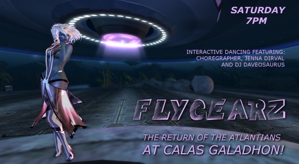 FlyGearz lands with a splash at Calas’ Santorini TONIGHT at a NEW time of 7pm SLT! Atlantis may have fallen into the ocean… but many escaped the destruction and they and the Mothership have returned! Theme is anything alien or Atlantian! Can you say beam me up?!! Cya soon! Arrive early for cache uploads – drop all the huds you can and keep your scripts down so we can all dance like nobody’s looking! Here’s your ride to the Airship Alice!