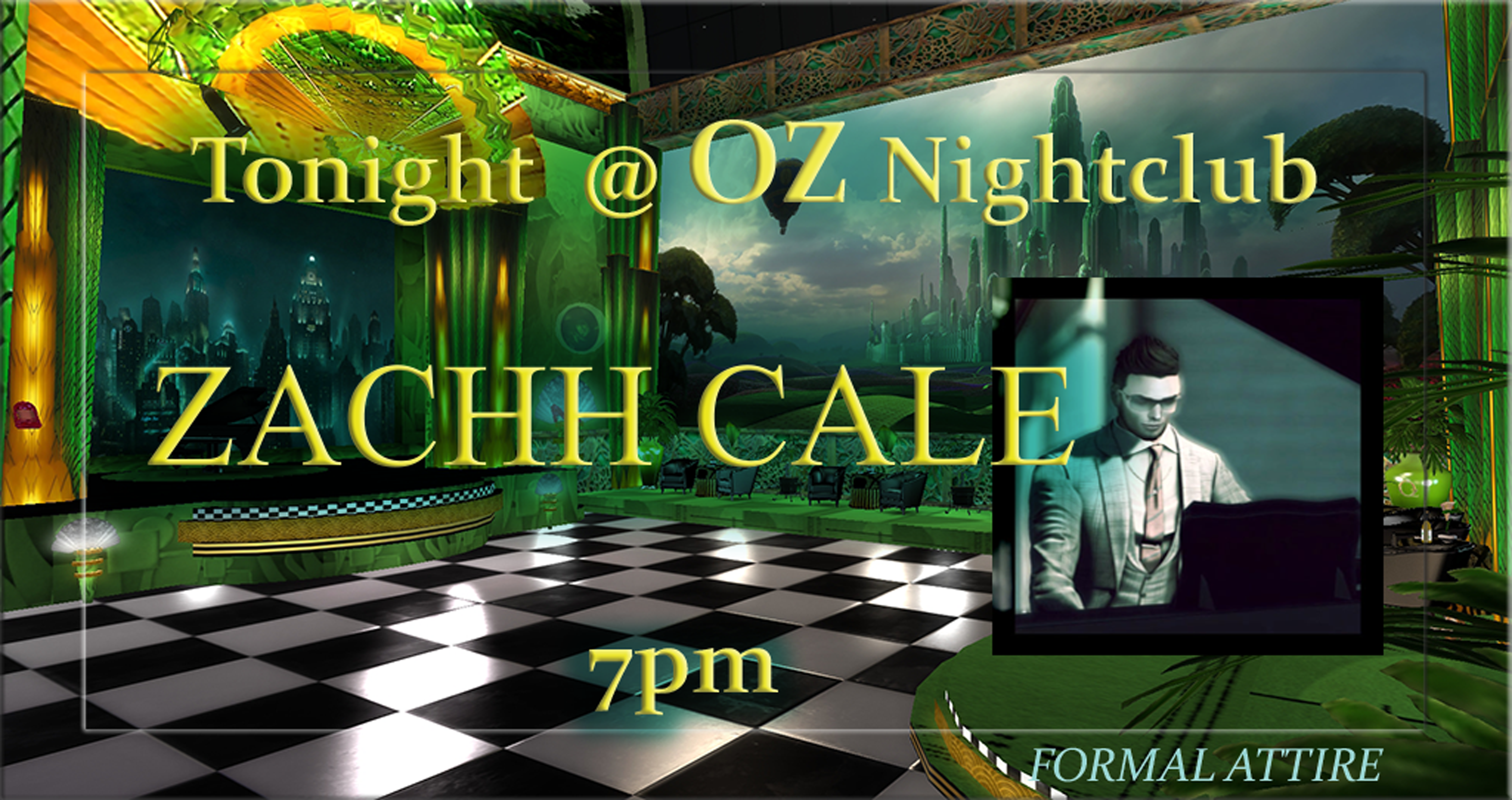We hope to see you tonight at 7:00 pm SLT @ OZ Nightclub for an hour of incredible entertainment from ZACHH CALE! Zachh is influenced by Elton John, Billy Joel, Bruce Springsteen, Joni Mitchell, the American Songbook, and many of the greats. *FORMAL* attire, scripts under 100 requested Here’s your Uber!