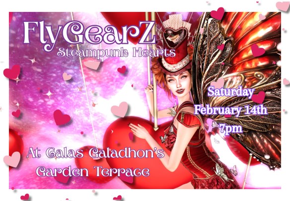 Join us for FLYGEARZ AT THE GARDEN TERRACE CALAS GALADHON, 7PM SLT! Jenna Dirval will be dancing us with a Steampunk Hearts theme for Valentines Day:) Dress steampunk or Valentiny:) Great fun and no work – Jenna dances us all with her great choreography! Here’s your ride!