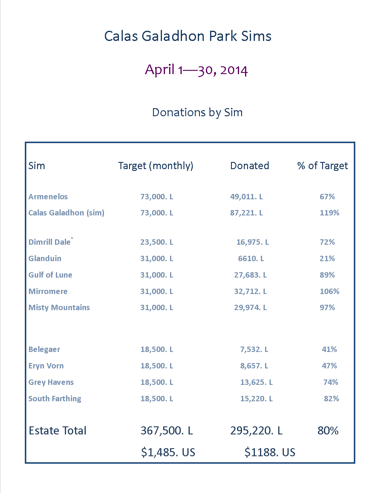 Donations by Sim2 April 1 – 30 2014 Published May 1, 2014 5:12 pm at 1275 × 1650 in Welcome to Calas Galadhon … Share this: Share on Facebook (Opens in new window) Facebook Share on X (Opens in new window) X Email a link to a friend (Opens in new window) Email Print (Opens in new window) Print Like Loading...