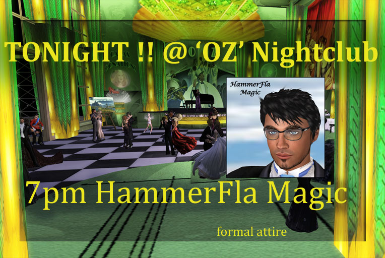 Join us for a special hour with HammerFla Magic as he returns to one of the most beautiful romantic venues in Second Life … our very own OZ Nightclub. Only the best of Live Music in SL!