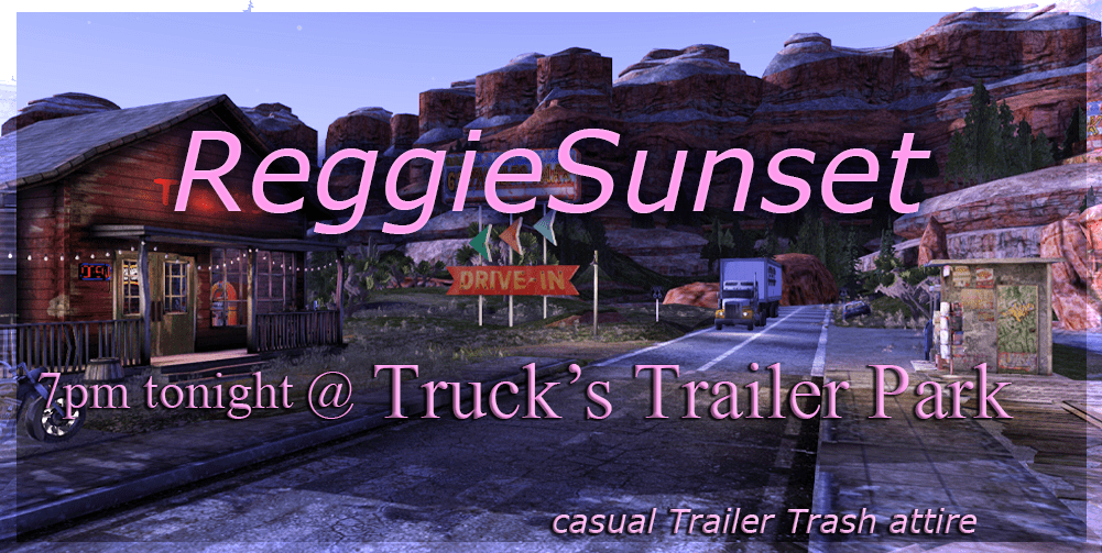REGGIE SUNSET and his tour van were seen parked at the garage on Rt 66 with a flat tire and steam shooting out of his radiator. Since he’s here, he’s going to do a show for us at Truck’s Trailer Park tonight @ 7 pm. Join us in your best PG tacky trailer park attire and strip those scripts down under 100! Here’s your ride!